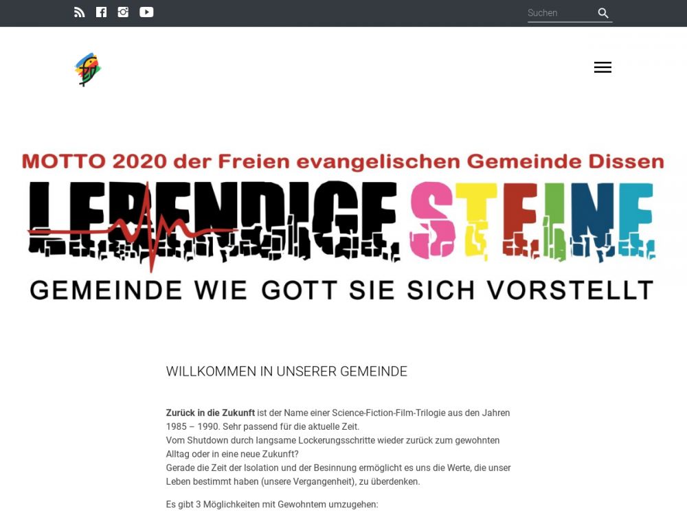 Die Freie evangelische Gemeinde Dissen ist eine Gemeinschaft von Menschen, die mit Jesus Christus lebt und die ihr Leben an Gottes Wort, der Bibel ausrichtet.Einen Pastor hat unsere Gemeinde nicht; bisher wird die Arbeit von den engagierten Mitgliedern, Freunden und einem motivierten Leitungskreis getragen.
