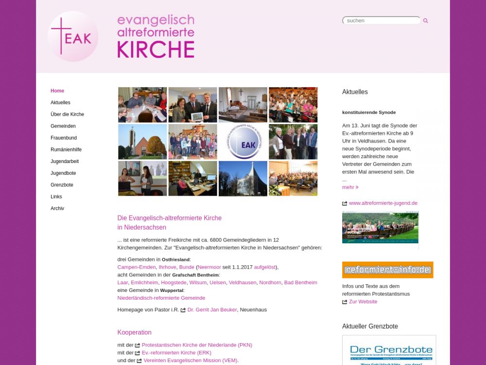 Wir gehören zur Ev.-altreformierten Kirche in Niedersachsen (EAK) und sind eine konfessionelle reformierte Freikirche im westlichen Niedersachsen. Die EAK zählt 12 Gemeinden mit insgesamt etwa 6.540 Gemeindegliedern. Unsere Gemeinde zählt etwa 250 Gemeindeglieder.Gemeinde-Info