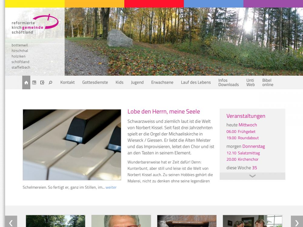 Die Kirchgemeinde Schöftland gehört zum Dekanat Kulm im Kanton Aargau und erstreckt sich über die Gemeinden Bottenwil, Hirschthal, Holziken, Schöftland und Staffelbach/Wittwil. In diesen fünf Dörfern leben rund 4100 reformierte Christen.Gemeinde-Info