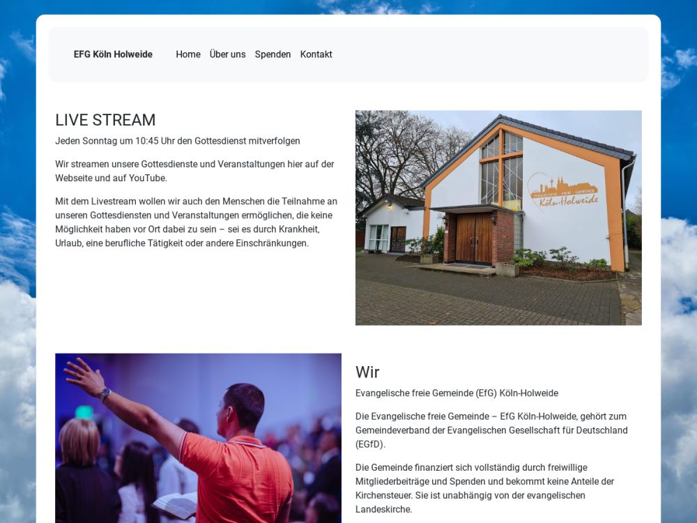 Evangelische freie Gemeinde (EfG) Köln-HolweideDie Evangelische freie Gemeinde – EfG Köln-Holweide, gehört zum Gemeindeverband der Evangelischen Gesellschaft für Deutschland (EGfD).