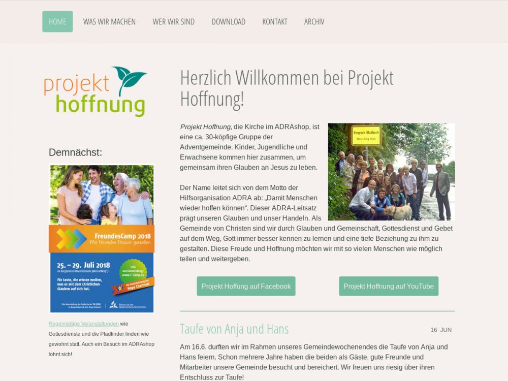 Herzlich willkommen bei Projekt Hoffnung in Bergisch Gladbach, der Kirche im ADRAshop.Gemeinde-Info