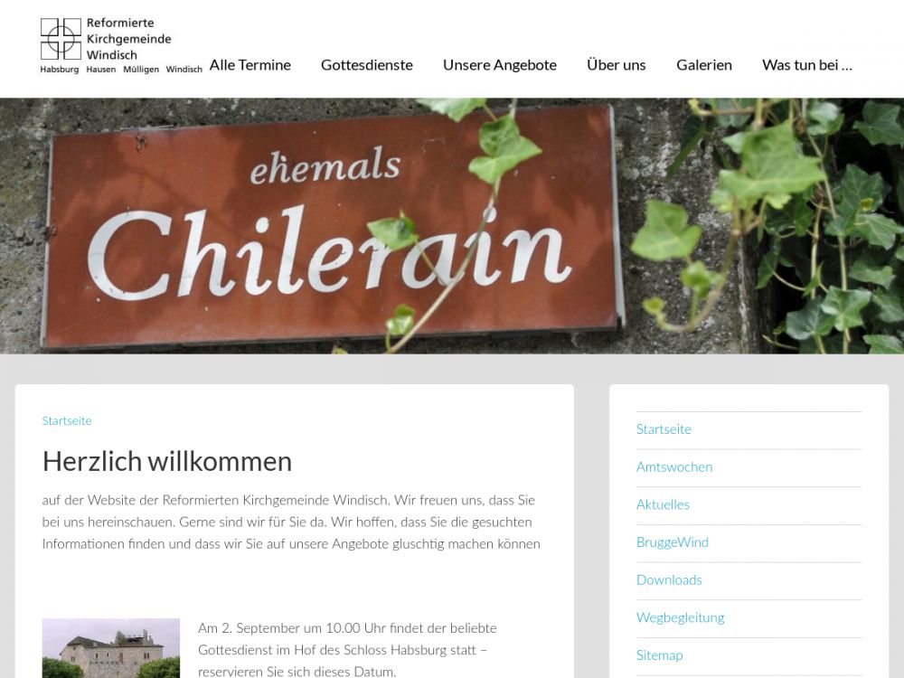 Unsere Kirchgemeinde umfasst das Einzugsgebiet der vier politischen Gemeinden Windisch, Hausen, Habsburg und Mülligen. Die regulären Gottesdienste am Sonntagmorgen finden abwechselnd in unseren Kirchen in Windisch und Hausen statt. Feiertage und besondere Gottesdienste (Ostern, Brot für alle, Sändwitsch-Gottesdienscht, Weihnacht, etc.) werden nur in jeweils einer der beiden Kirchen gefeiert. In Mülligen findet im Frühling ein Waldgottesdienst an der Reuss statt und im Spätsommer feiern wir einen Freiluftgottesdienst auf Schloss Habsburg.Gemeinde-Info