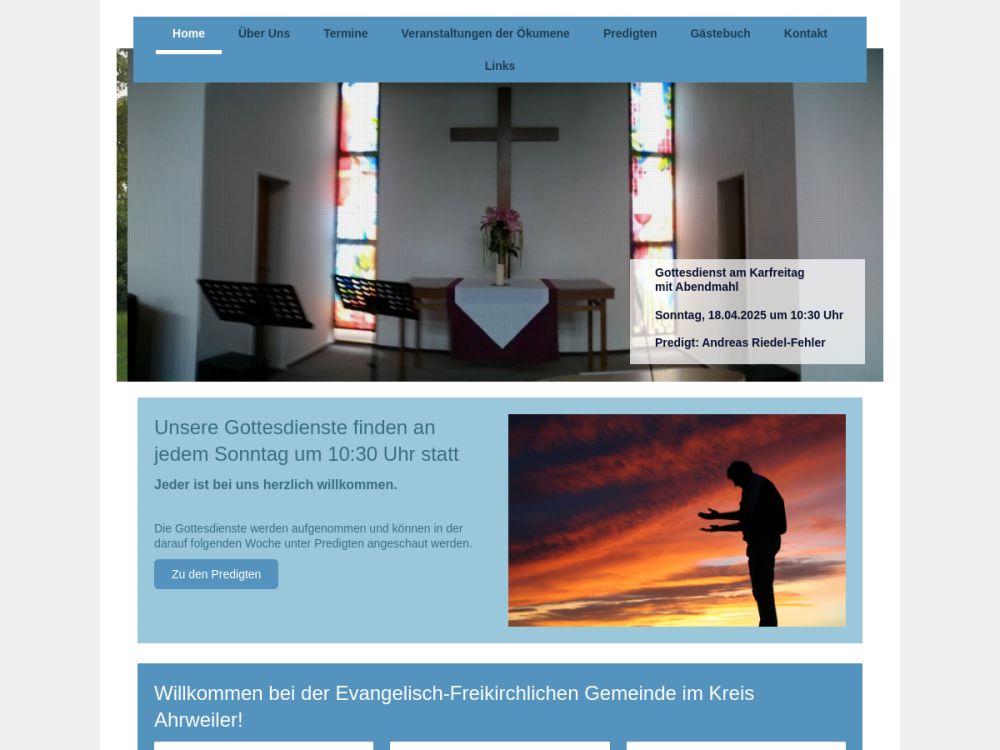 | Gottesdienst: | Sonntag 10:30 Uhr |