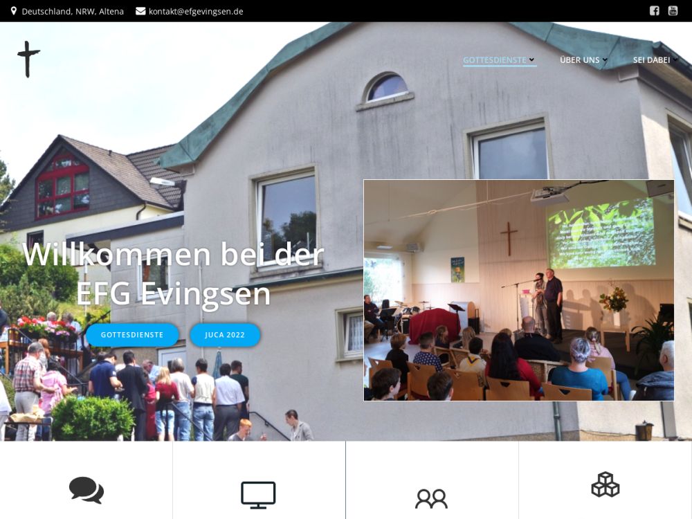 Die Evangelisch freikirchliche Gemeinde Evingsen hat ca. 55 Gemeindemitglieder. Zum Gottesdienst versammeln sich zwischen 40 und 60 Personen. Neben dem Gottesdienst hat die Gemeinde Angebote für die verschiedenen Alters- und Interessengruppen, die für uns sehr wichtig sind und alle im Ehrenamt ausgeführt werden.Weiter Informationen sind auf unseren Webseiten ersichtlich: