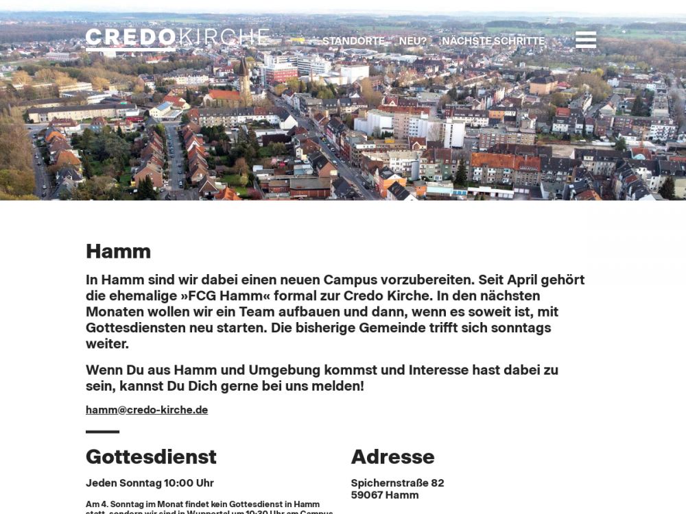 Wir sind eine Kirche, die an einen Gott glaubt, der nicht tot, sondern heute erfahrbar ist. Wir sind eine Kirche, die an einen Gott glaubt, der gut ist und das Beste für uns will. Wir sind eine Kirche, die glaubt, dass Jesus Christus heute rettet, befreit und Leben in Fülle und Freiheit bringt. Willkommen in der Credo Kirche!Gemeinde-Info