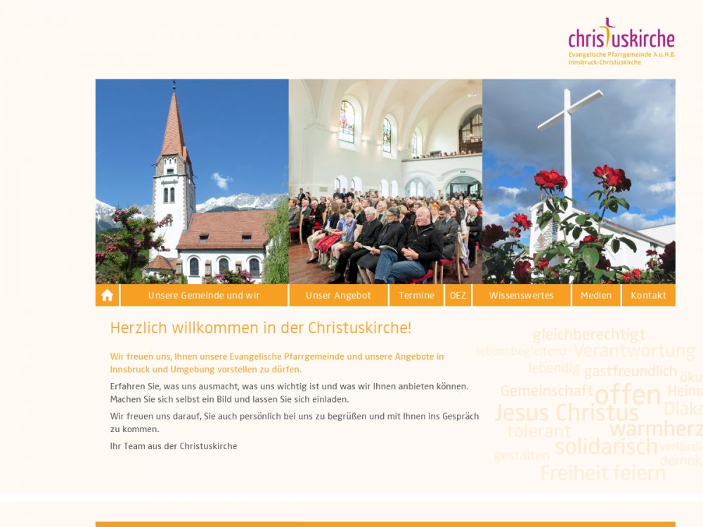 Wir sind die älteste und größte evangelische Pfarrgemeinde in Nordtirol mit gut 3.600 Mitgliedern in Innsbruck, sowie südlich und westlich der Landeshauptstadt.Die 1906 erbaute Christuskirche im schönen Stadtteil Saggen dient seit der gelungenen Umgestaltung ihres Innenraums 2006 und der Errichtung eines barrierefeien Zugangs vom Martin Luther Platz her auch als Offenes Evangelisches Zentrum (OEZ), in dem neben den Gottesdiensten auch Gemeinschafts- und Bildungsveranstaltungen, Konzerte, Theater- und Filmvorführungen im besonderen Rahmen stattfinden. Auch an anderen Orten im Gemeindegebiet leben und feiern wir unseren Glauben.