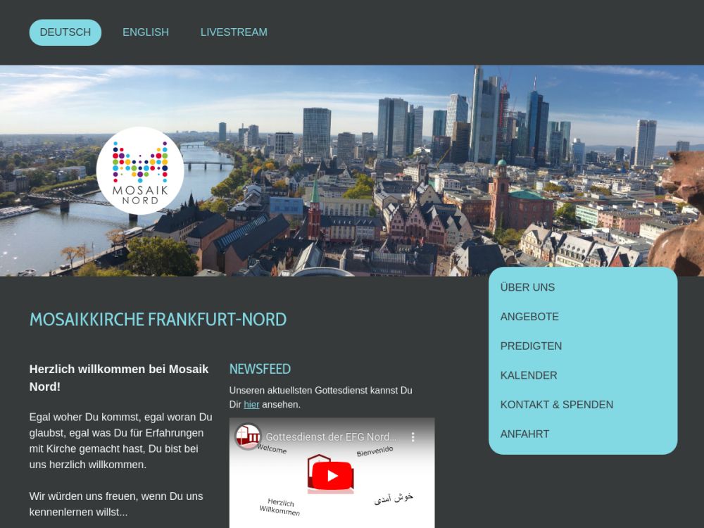 Egal woher Du kommst, egal an was Du glaubst, egal was Du für Erfahrungen mit Kirche gemacht hast, Du bist bei uns herzlich willkommen.Wir sind eine evangelische Kirche, die Teil des Netzwerkes der MosaikKirchen in Frankfurt-Rhein-Main, des evangelischen Gemeinschaftswerkes Chrischona sowie der Evangelischen Allianz Frankfurt ist.