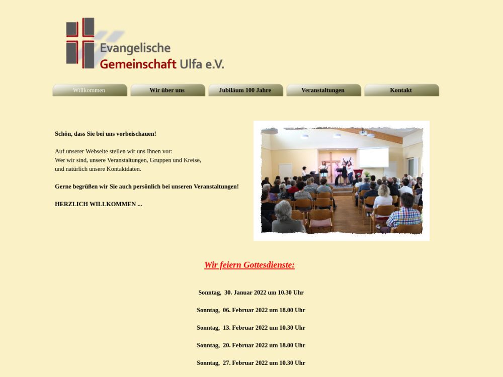 | Gottesdienst: | Sonntag 10:00 Uhr; jeweils erster Sonntag im Monat 18:00 Uhr |