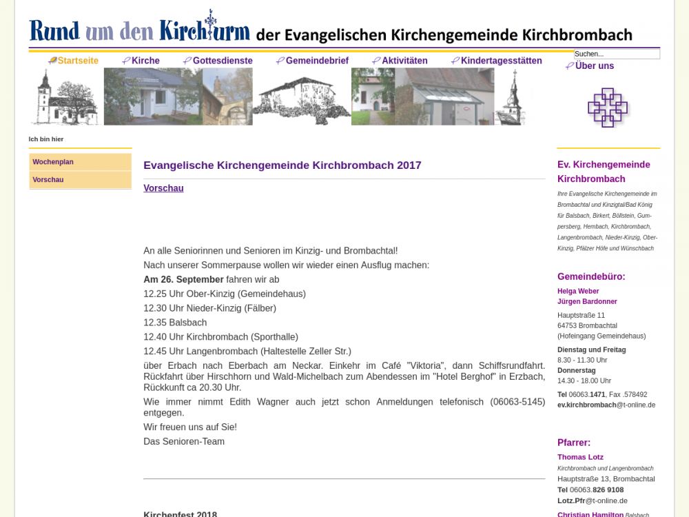 Kirchengemeinde der Ev. Kirche Hessen und Nassau im Dekanat Odenwald mit ca. 2.500 Mitgliedern in 8 Dörfern, ein mittelalterliches Kirchspiel über Brombachtal und Ortsteilen von Bad König, Landkreis OdenwaldGemeinde-Info