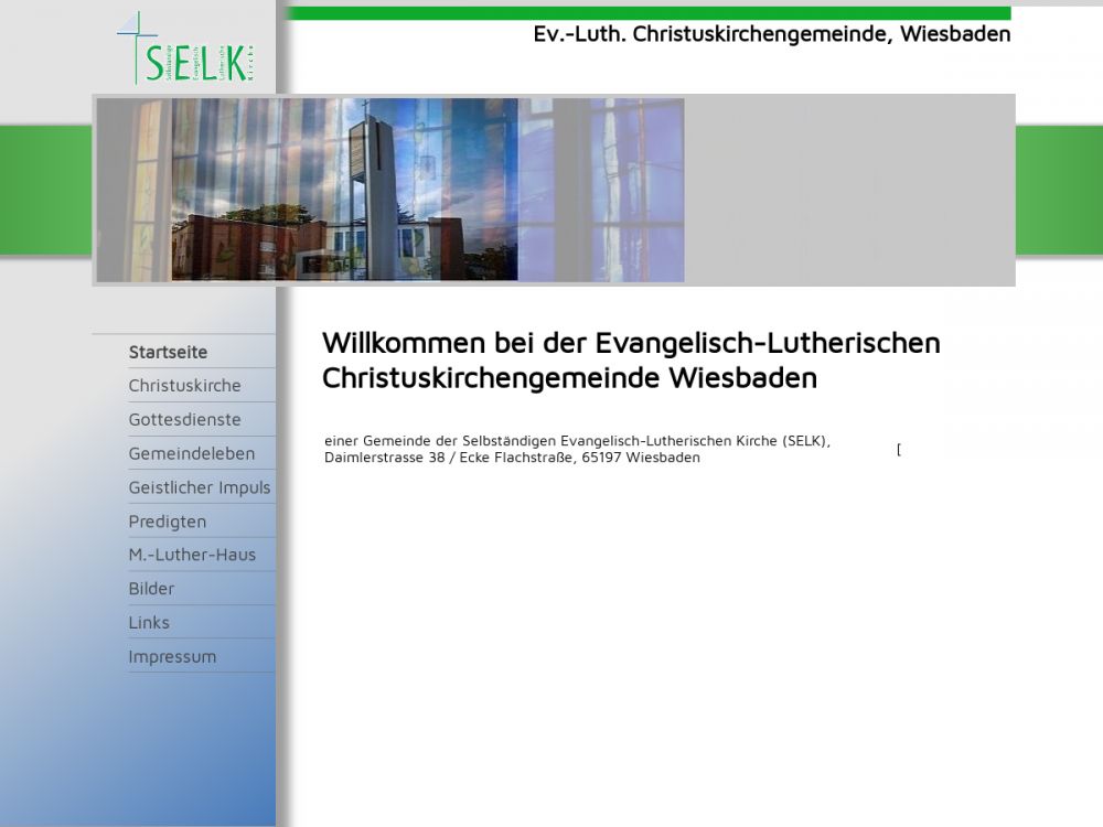 Die Christuskirchengemeinde Wiesbaden ist eine Gemeinde der Selbständigen Evangelisch-Lutherischen Kirche (Selbstständig = vom Staat unabhängig; Evangelisch = das Evangelium von Jesus Christus im Zentrum der Verkündigung; Lutherisch = gebunden an das Bekenntnis der lutherischen Reformation). Im Zentrum unserer Gemeindearbeit stehen die liturgisch gestalteten Gottesdienste mit der biblischen Botschaft der Rettung des Sünders allein aus Gnade, allein um Christi willen, allein durch den Glauben.Gemeinde-Info