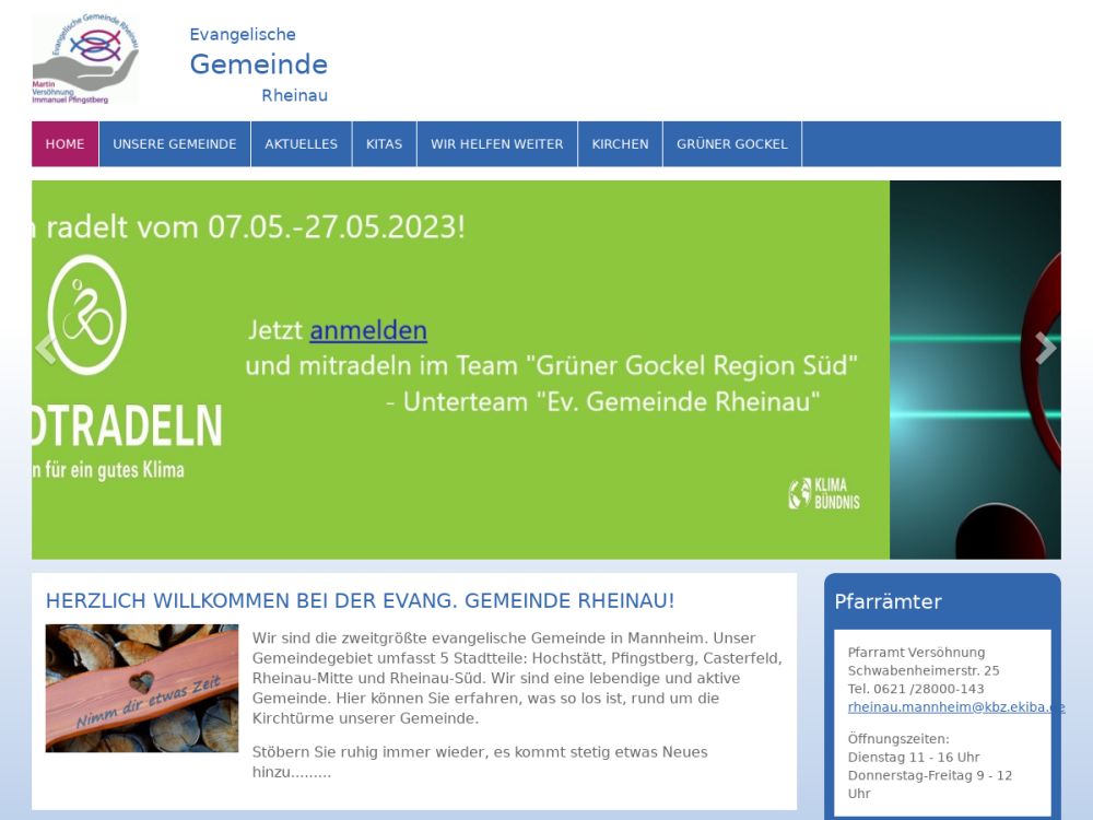 | Gottesdienst: | 1.+3. Sonntag 10:00 Uhr, 2.+4. Samstag 18 Uhr |