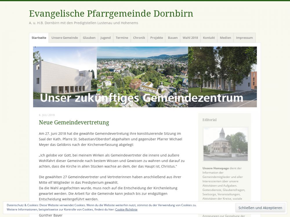 Michael Meyer ist seit 2009 Pfarrer in Dornbirn. Er ist der 6. Pfarrer in Folge. Die Pfarrgemeinde gehört der reformierten Kirche in Österreich an.