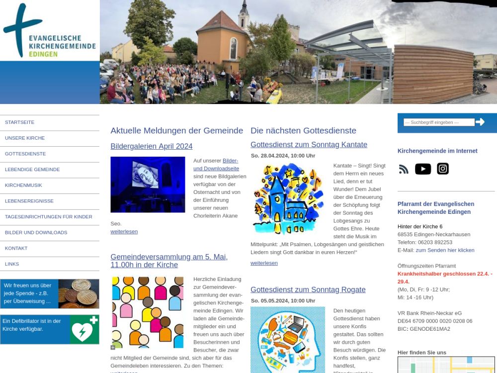 Lebendige Gemeinde mit aktiven Mitgliedern in allen Altersgruppen. Viel Musik: 2 Singchöre, Posaunenchor, Flötengruppe, Rock/Pop-Formationen. Öfters Freiluft- und Familiengottesdienste.Gemeinde-Info