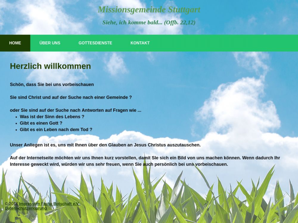 | Gottesdienst: | Gottesdienst: Sonntags 10:30-11:30 ; Bibelstunde: Donnerstags 20:00-21:00 |