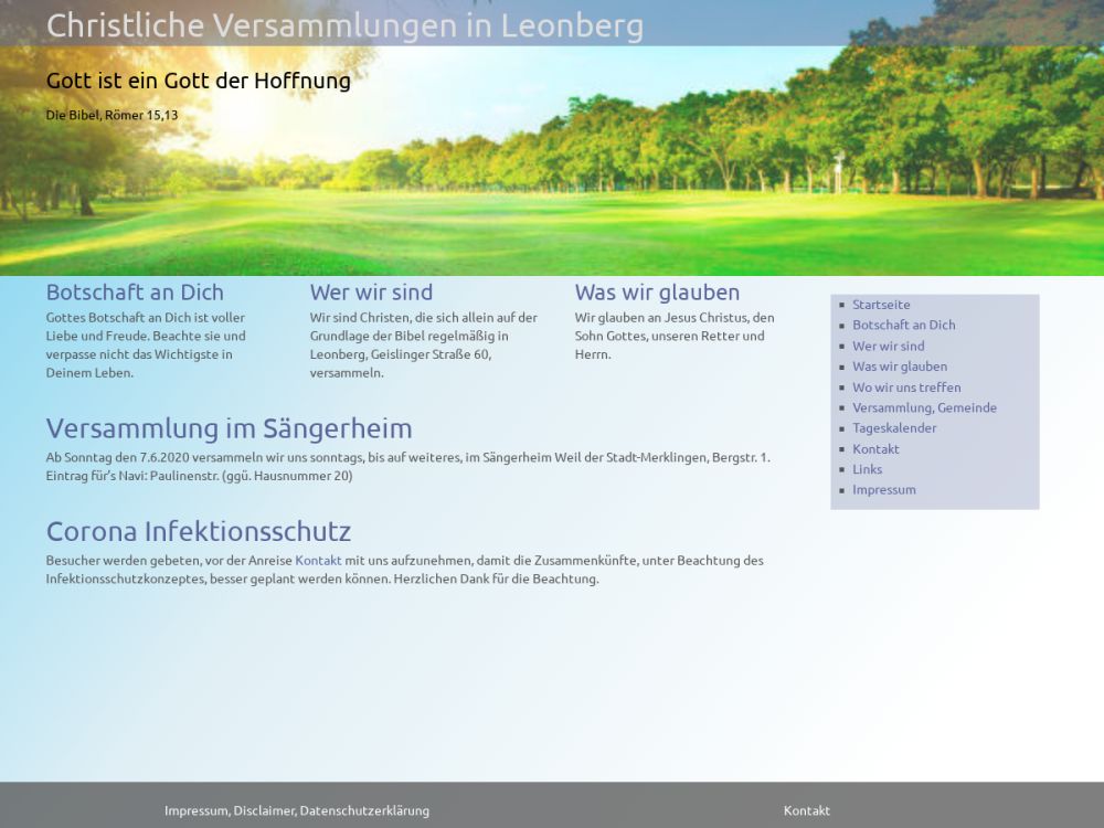 Wir sind Christen, die sich allein auf der Grundlage der Bibel regelmäßig in Leonberg, Geislinger Straße 60, versammeln.Wir glauben an Jesus Christus, den Sohn Gottes, unseren Retter und Herrn.