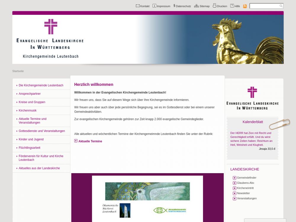 Willkommen in der Evangelischen Kirchengemeinde Leutenbach.Wir freuen uns, dass Sie auf diesem Wege sich über Ihre Kirchengemeinde informieren.
