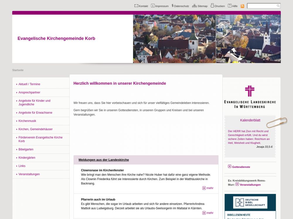 | Gottesdienst: | Sonntag, 9:15 Uhr Kirche Kleinheppach, 10:00 Uhr Kirche Korb, 10 Uhr Kirche Beinstein |