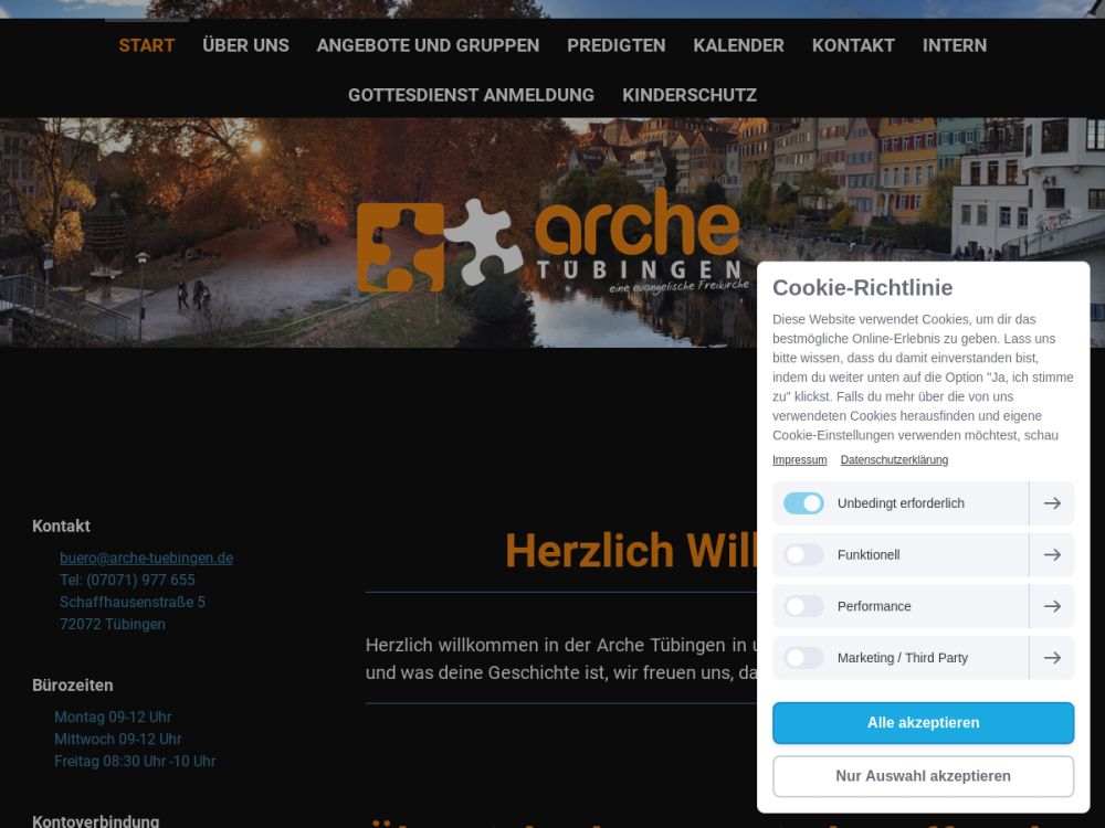 Die ARCHE ist eine evangelische Freikirche in Tübingen. Wir bauen keine Boote mehr, sondern wir bauen Gemeinde. Und uns verbindet der Auftrag, mit Gott und für Gott zu leben. Menschen – nicht Veranstaltungen oder Programme – machen die ARCHE aus.In unseren Gottesdiensten, Hauskreisen und sonstigen Treffen wird das spür- und erlebbar. Steig ein und lerne hier die vielen unterschiedlichen Seiten der ARCHE kennen!