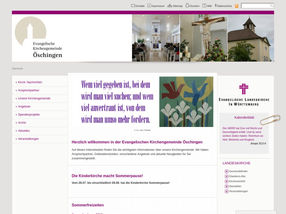 Die Kirchengemeinde Öschingen gehört zur Evangelischen Landeskirche Württemberg, hier zum Dekanat Tübingen.Neben den Leitungsgremien der Kirche mit dem Landesbischof Frank O. July an der Spitze und der verantwortlichen Dekanin Elisabeth Hege aus Tübingen, trägt in Öschingen der Kirchengemeinderat zusammen mit Pfarrer Lämmer die Verantwortung.