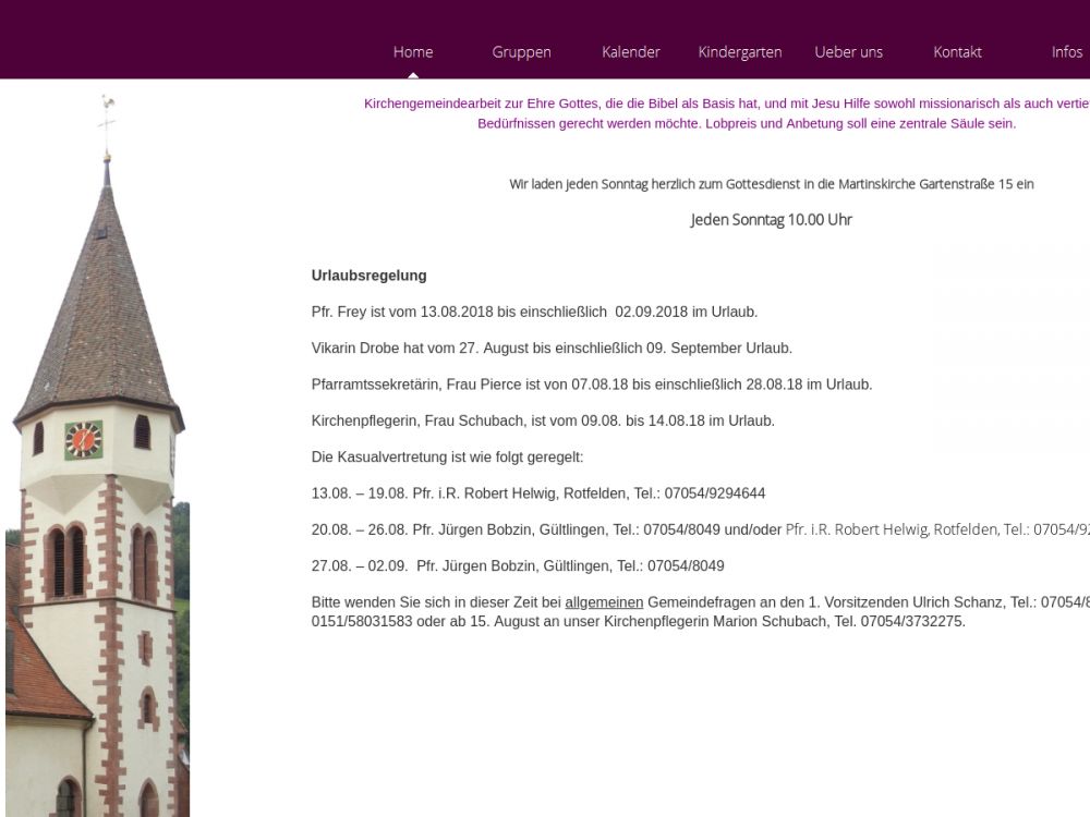 | Gottesdienst: | Sonntag 10.00 Uhr |