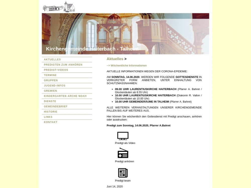 | Gottesdienst: | Sonntag 9.45 Uhr |