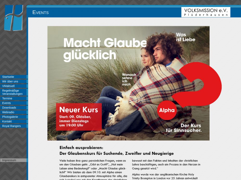 "Christozentrisch" - "Barmherzig" - "Natürlich"Royal Rangers | Teeniebunker | Alphakurse | Ehekurse | Hauskreise | Hilfsdienste | Worshipbands | Only for men | City - Gebet | Evangelische Allianz | Weltmission | Israel |