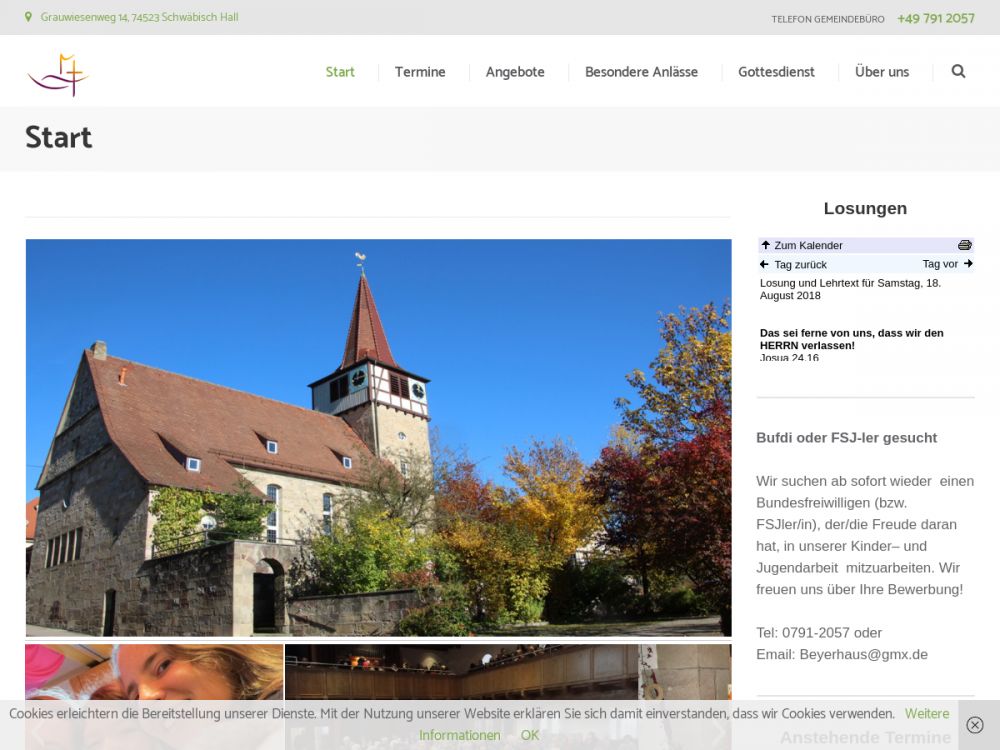 | Gottesdienst: | Sonntag 10:00 Uhr, parallel Kinderkirche (außer in Ferien) und Streaming |