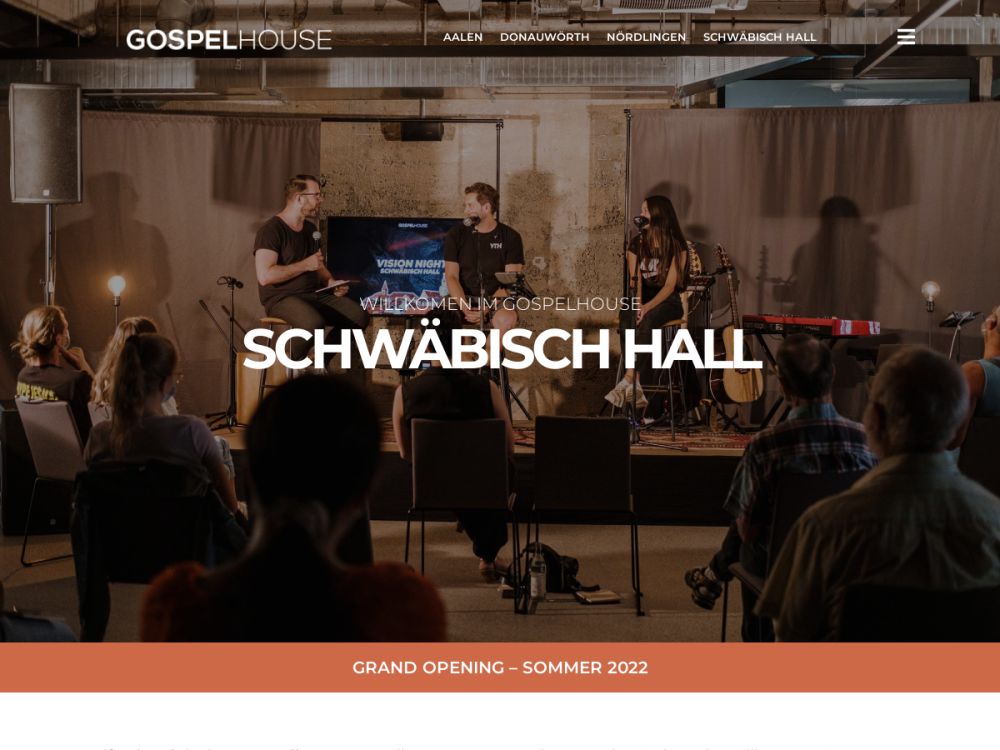 Willkommen bei uns im Gospelhouse Schwäbisch Hall.Wir freuen uns, Dich am Sonntag in unseren Gottesdiensten begrüßen zu dürfen. Hinterher können wir gerne im Café ins Gespräch kommen. Schau doch auch mal auf unserer Homepage nach, was wir so machen und wirf einen Blick auf unser Kleingruppenangebot.