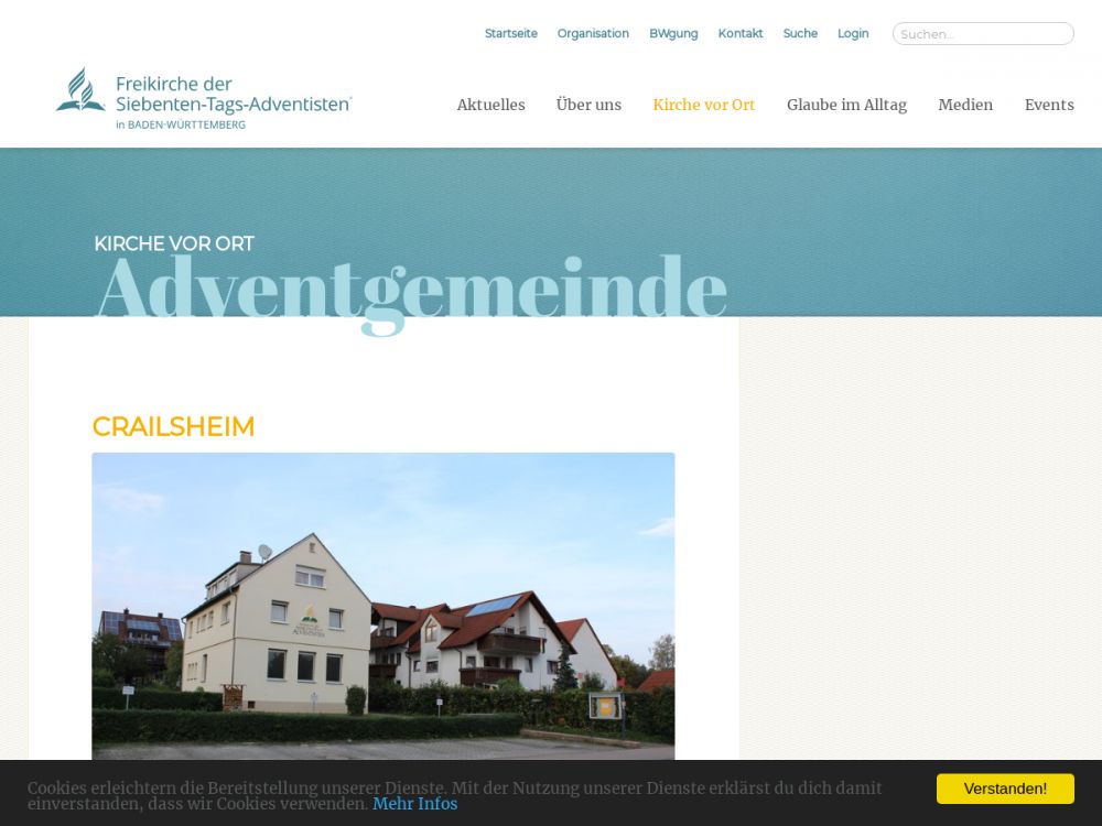 Adventgemeinde Crailsheim ist die Ortsgemeinde, der Freikirche in Deutschland. Sie gehört zu der weltweiten Freikirche der “Siebenten-Tags-Adventisten”.Gemeinde-Info