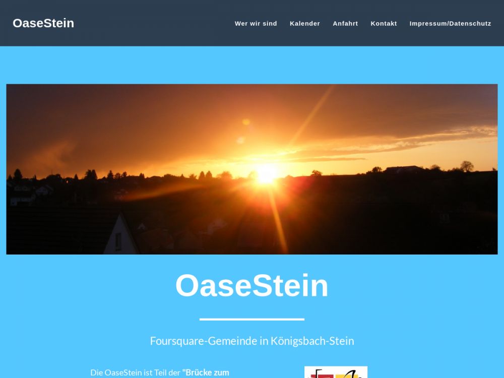 Die OaseStein ist Teil der Gemeinde in der Konkordia in Bühl. Diese ist eine evangelische Freikirche und gehört dem Gemeindebund "Foursquare Deutschland" an, dem deutschen Zweig der weltweiten "Foursquare-Bewegung".Gemeinde-Info