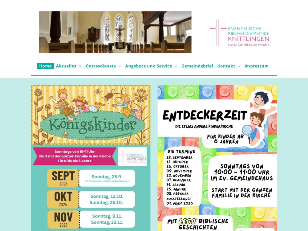 Die Evangelische Kirchengemeinde Knittlingen gehört zur Evangelischen Landeskirche in Württemberg. Ein vielfältiges und lebendiges Gemeindeleben mit zahlreichen Gottesdienstangeboten gehört zu uns.Gemeinde-Info