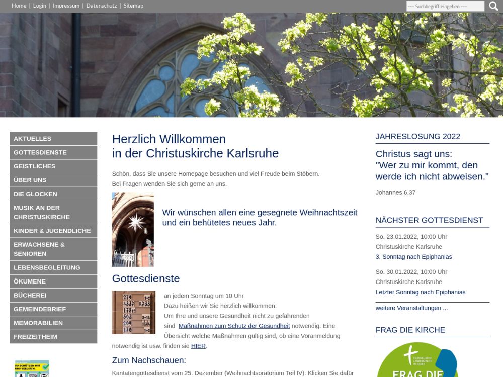 Die Christuskirche Karlsruhe gehört zu den herausragenden Zentren der Kirchenmusik in Südwestdeutschland. Ihr kirchenmusikalisches Profil auf hohem Niveau findet über die Region hinaus Beachtung und trifft auf große Resonanz. Detaillierte Informationen zu Konzerten, Kantorat, Oratorien- und Kammerchor, Bläserkreis, Senioren- und Kinderkantorei sowie zur 2010 erneuerten und stark erweiterten Klais-Orgel finden Sie auf der Website des Kantorats: Musik an der Christuskirche.