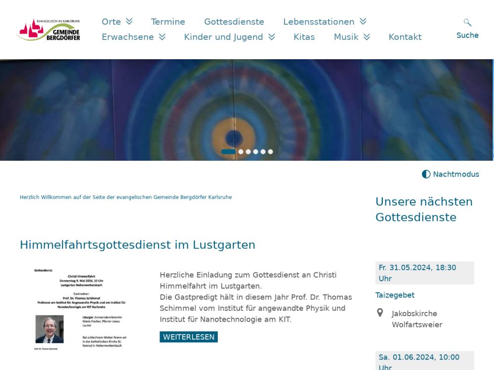Jakobskirche Wolfartsweier und dem Ökumenischen Gemeindezentrum Bergwald als Gottesdienstorten.