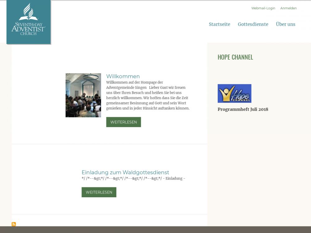 Die Freikirche der Siebenten-Tags-Adventisten in Deutschland ist eine Körperschaft des öffentlichen Rechts. Siebenten-Tags-Adventisten anerkennen allein die Bibel als Richtschnur ihres Glaubens. Sie teilen mit allen Christen den Glauben an Jesus Christus. Er ist die Mitte ihres Lebens. Und sie glauben, dass es wichtig ist, das Evangelium, die Nachricht von der Errettung, allen Menschen zu bringen.Gemeinde-Info