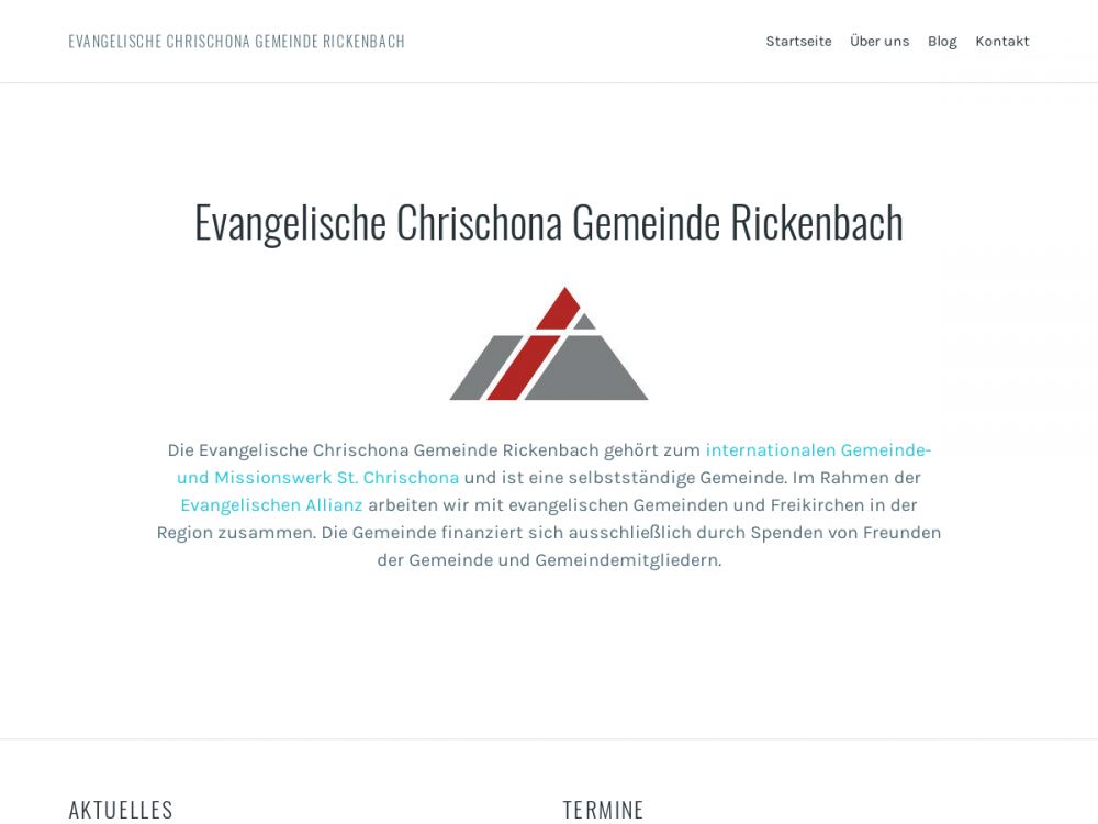 Die Evangelische Chrischona Gemeinde Rhickenbach ist Teil des Chrischona - Gemeinschaftswerkes e.V. (CGW) in Gießen, dem deutschem Zweig des Verbandes Chrischona International, in CH - Bettingen bei Basel. Hier befindet sich auch das Theologische Seminar St. Chrischona (tsc). Am tsc werden junge Menschen für die vielfältigen Aufgaben der Gemeindearbeit, des Missionsdienstes, für den Religionsunterricht und die Diakonie ausgebildet. Die Gemeinde finanziert sich ausschließlich durch Spenden der Gemeindeglieder und Freunde. Im Rahmen der Evangelischen Allianz arbeiten wir auch mit anderen Gemeinden und Werken zusammen.Gemeinde-Info