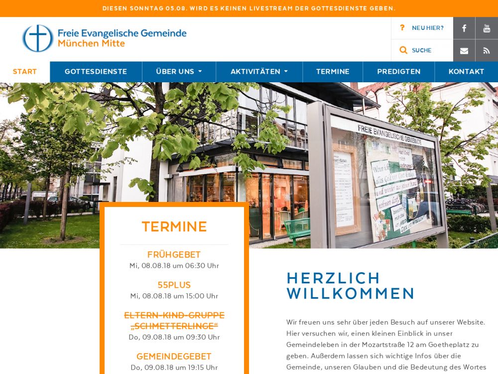 Die FEG München-Mitte ist eine selbstständige Gemeinde, die zum Bund Freier evangelischer Gemeinden in Deutschland gehört.Zu uns gehören ca. 400 erwachsene Mitglieder aus verschiedensten Hintergründen und aus allen Altersgruppen. Jeden Sonntag wird in unserem Gemeindehaus Mozartstr. 12 um 10.00, um 12.00 und um 19.00 Uhr Gottesdienste gefeiert. Parallel zum Morgengottesdienst finden in mehreren Gruppen Kindergottesdienste für Kinder und Jugendliche im Alter von 0-14 Jahren statt.