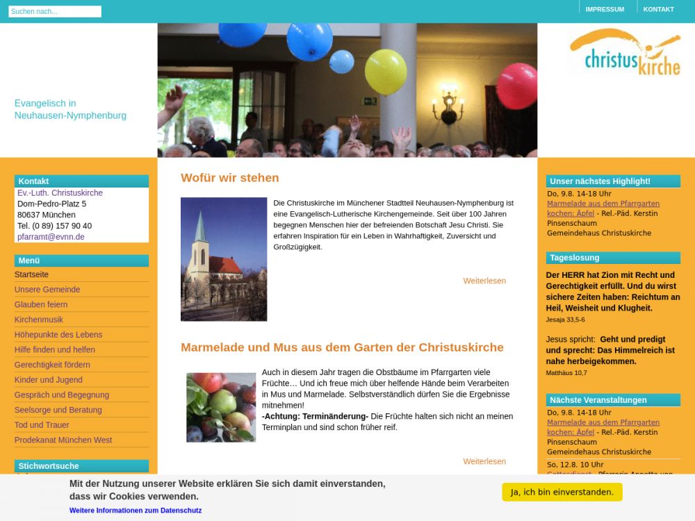 Die Christuskirche im Münchener Stadtteil Neuhausen-Nymphenburg ist eine Evangelisch-Lutherische Kirchengemeinde. Seit über 100 Jahren begegnen Menschen hier der befreienden Botschaft Jesu Christi. Sie erfahren Inspiration für ein Leben in Wahrhaftigkeit, Zuversicht und Großzügigkeit.Gemeinde-Info