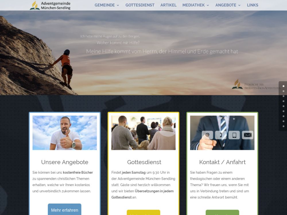 Die Adventgemeinde München-Sendling ist die kleinste adventistische Gemeinde in München. Sehr familiär und offenherzig gegenüber jedermann. Gäste sind jederzeit herzlich willkommen.Jeden Samstag Gottesdienst ab 09:30 Uhr: Mit Lobpreis, Bibelgespräch, Predigt und einem zeitlichen Raum zum austauschen von Erfahrungen mit Gott. Oft gibt es nach dem Gottesdienst auch ein gemeinsames Mittagessen.