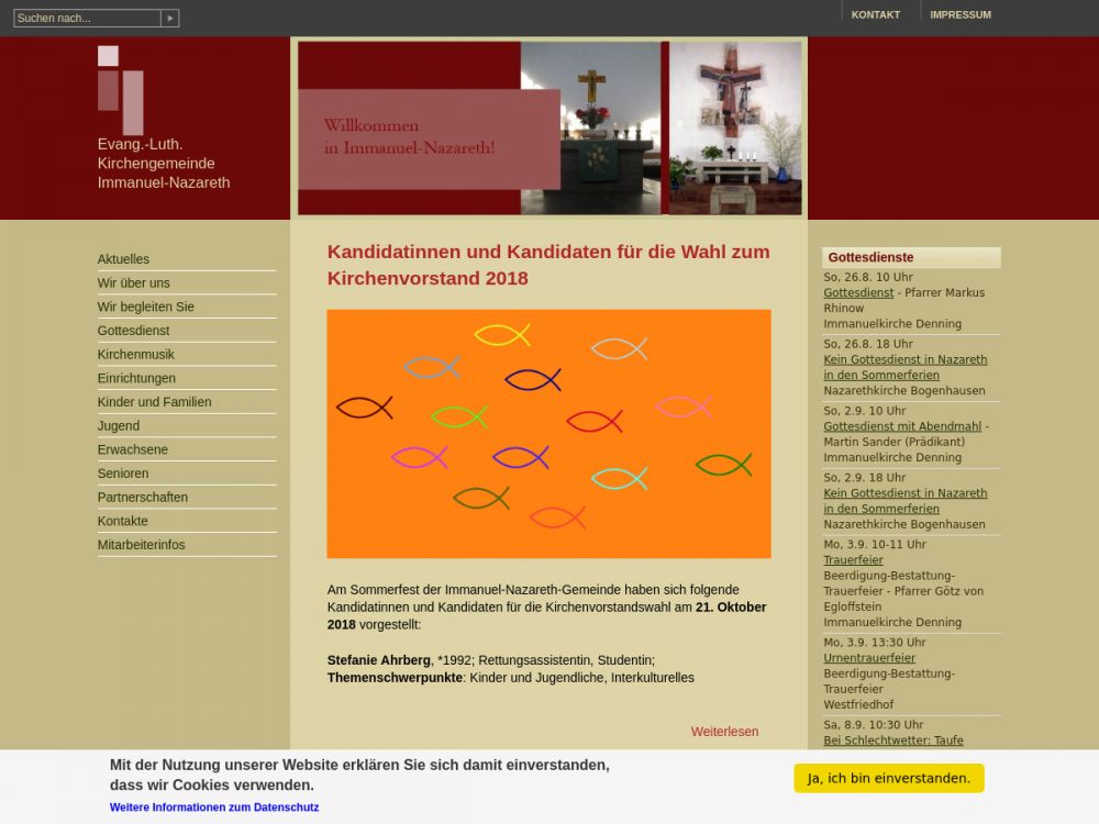 | Gottesdienst: | Sonntag 10:00 Uhr Immanuelkirche und 18:00 Uhr Nazarethkirche |