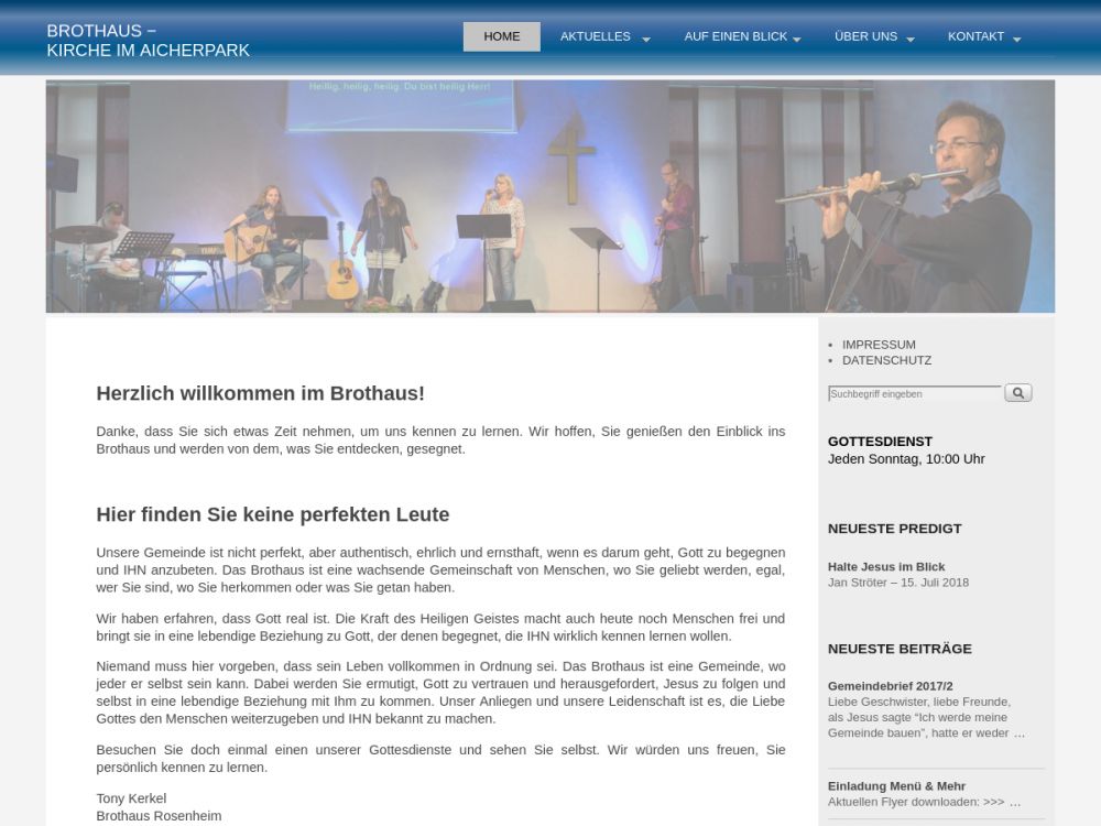 Unsere Gemeinde ist nicht perfekt aber authentisch, ehrlich und ernsthaft, wenn es darum geht, Gott zu begegnen und IHN anzubeten. Das Brothaus ist eine wachsende Gemeinschaft von Menschen, wo Sie geliebt werden, egal, wer Sie sind, wo sie herkommen oder was Sie getan haben. Doch hier werden sie ermutigt, Gott zu vertrauen und herausgefordert, Jesus zu folgen und selbst in eine lebendige Beziehung mit IHM zu kommen.Gemeinde-Info