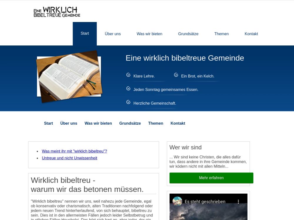 Wirklich bibeltreu - warum wir das betonen müssen."Wirklich bibeltreu" nennen wir uns, weil nahezu jede Gemeinde, egal ob konservativ oder charismatisch, alten Traditionen nachfolgend oder jedem neuen Trend hinterherlaufend, von sich behauptet, bibeltreu zu sein. Dies ist in den meisten Fällen jedoch leider Selbstbetrug und in etlichen Fällen Heuchelei. Das hört sich hart an, aber jeder, der ein paar Gemeinden besucht und eine Weile beobachtet hat, wird wissen, wovon wir reden.