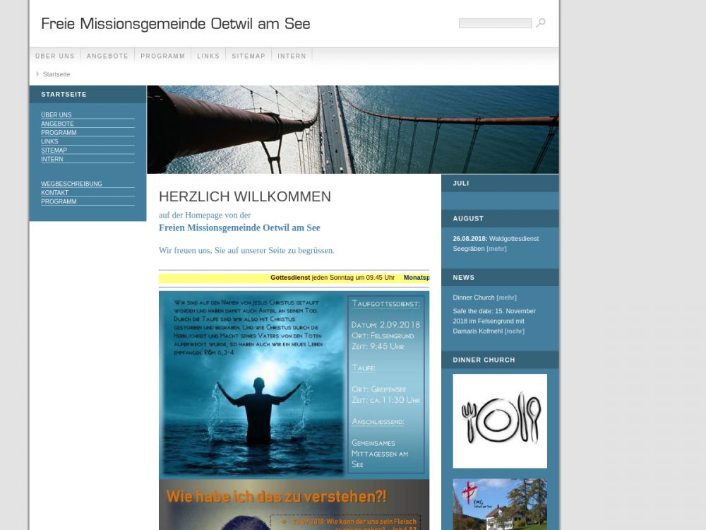 Wir, die FMG Oetwil, sind eine Kirche, in der jede Generation herzlich Willkommen ist und seinen Platz finden darf, ob du Jugendlicher oder Senior, Familienmensch oder Single bist. Was uns verbindet, ist das Unterwegs sein mit Jesus. Unsere Kirche gibt es, weil wir Gemeinschaft mit Gott und untereinander leben wollen. Deshalb feiern wir jeden Sonntag um 9:45 Uhr Gottesdienst. Parallel dazu findet auch ein Programm für Kinder statt. Du bist herzlich eingeladen bei uns hineinzuschauen!Gemeinde-Info