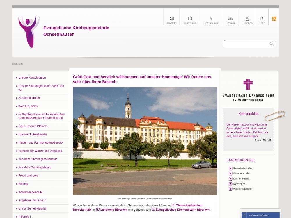 Wir sind eine kleine Diasporagemeinde im "Himmelreich des Barock" an der Oberschwäbischen Barockstraße im Landkreis Biberach und gehören zum Evangelischen Kirchenbezirk Biberach,der wiederum in die Evangelische Landeskirche in Württemberg gehört.Gemeinde-Info