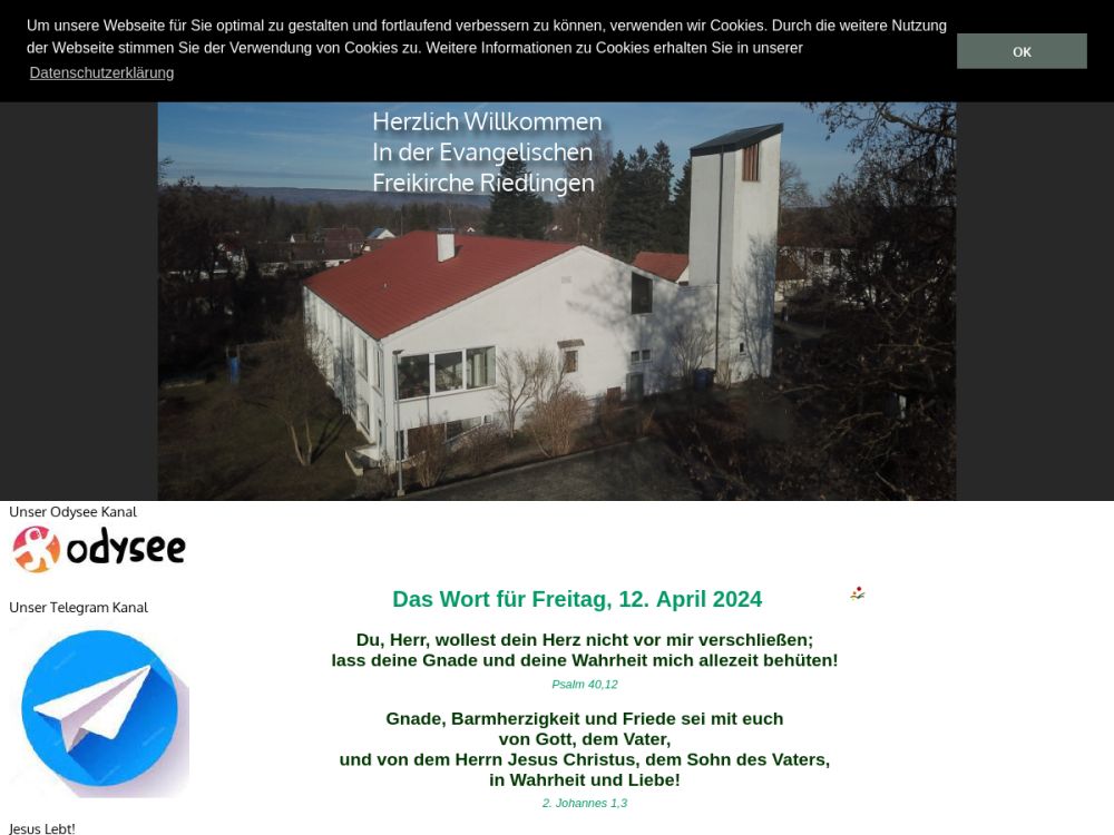 Wir übertragen unsere Gottesdienste auf Odysee und Telegram, näheres finden Sie auf unserer Homepage.