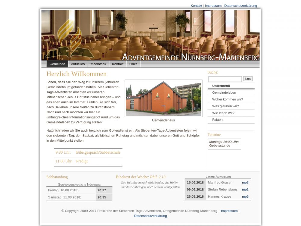 | Gottesdienst: | Samstag 9:30 Uhr |