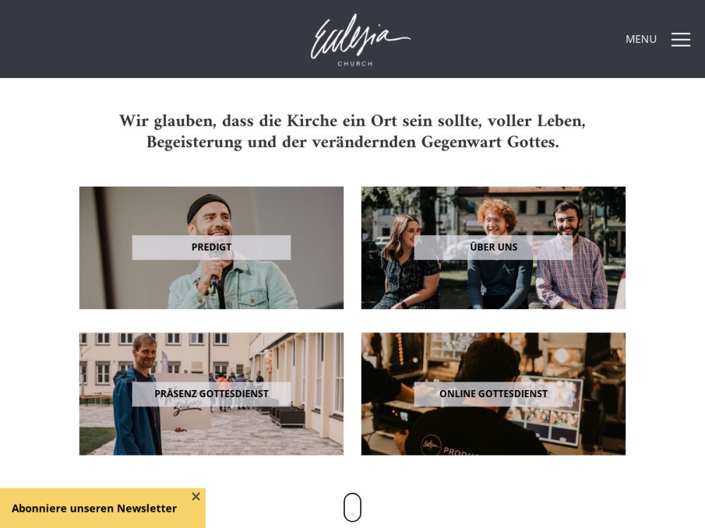 Wir glauben, dass die Kirche ein Ort sein sollte, voller Leben, Begeisterung und der verändernden Gegenwart Gottes. Wenn du unseren Gottesdienst besuchst, wirst du genau das erleben.Wir ehren Gott durch Lobpreis und predigen die Bibel auf eine lebensnahe, praktische und kraftvolle Weise. Jeden Sonntag erleben hunderte von Menschen die Gegenwart Gottes und finden neue Hoffnung durch Jesus Christus.