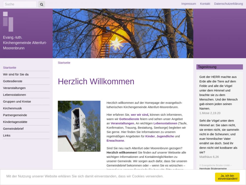| Gottesdienst: | Altenfurt Sonntag 10:15 Uhr, Moorenbrunn Sonntag 9:00 Uhr |
