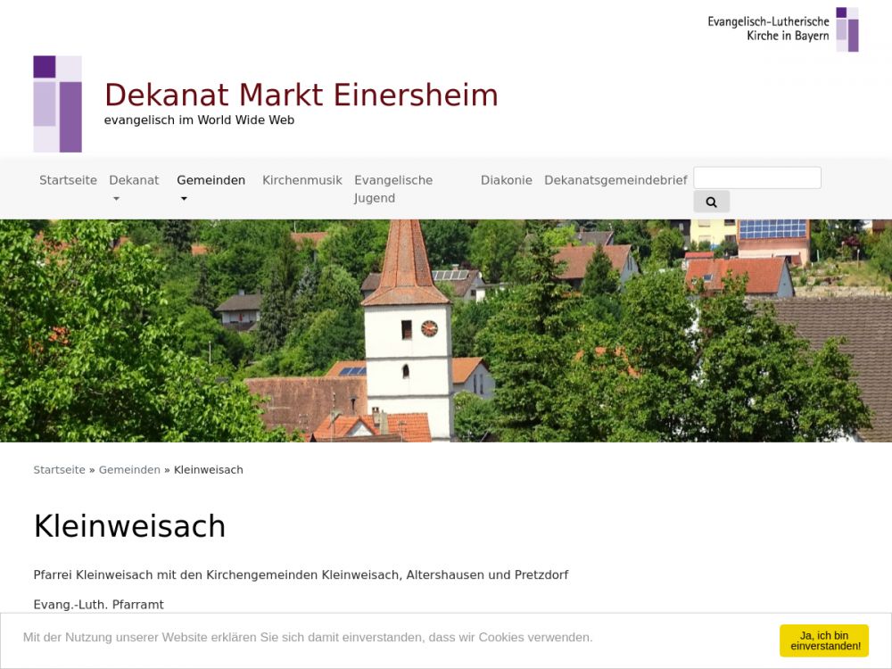 | Gottesdienst: | Sonntags, i. d. R. 14-tägig, Kleinweisach: 9:30 Uhr, Altershausen und Pretzdorf: 9:00 Uhr bzw. 10:15 Uhr |