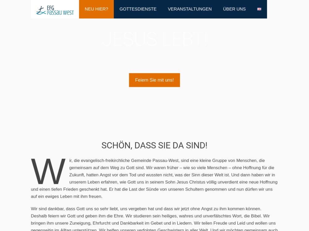 Wir, die evangelisch-freikirchliche Gemeinde Passau-West, sind eine kleine Gruppe von Menschen, die gemeinsam auf dem Weg zu Gott sind. Wir waren früher – wie so viele Menschen – ohne Hoffnung für die Zukunft, hatten Angst vor dem Tod und wussten nicht, was der Sinn dieser Welt ist. Und dann haben wir in unserem Leben erfahren, wie Gott uns in seinem Sohn Jesus Christus völlig unverdient eine neue Hoffnung und einen tiefen Frieden geschenkt hat. Er hat die Last der Sünde von unseren Schultern genommen und nun dürfen wir uns auf ein ewiges Leben mit ihm freuen.Gemeinde-Info