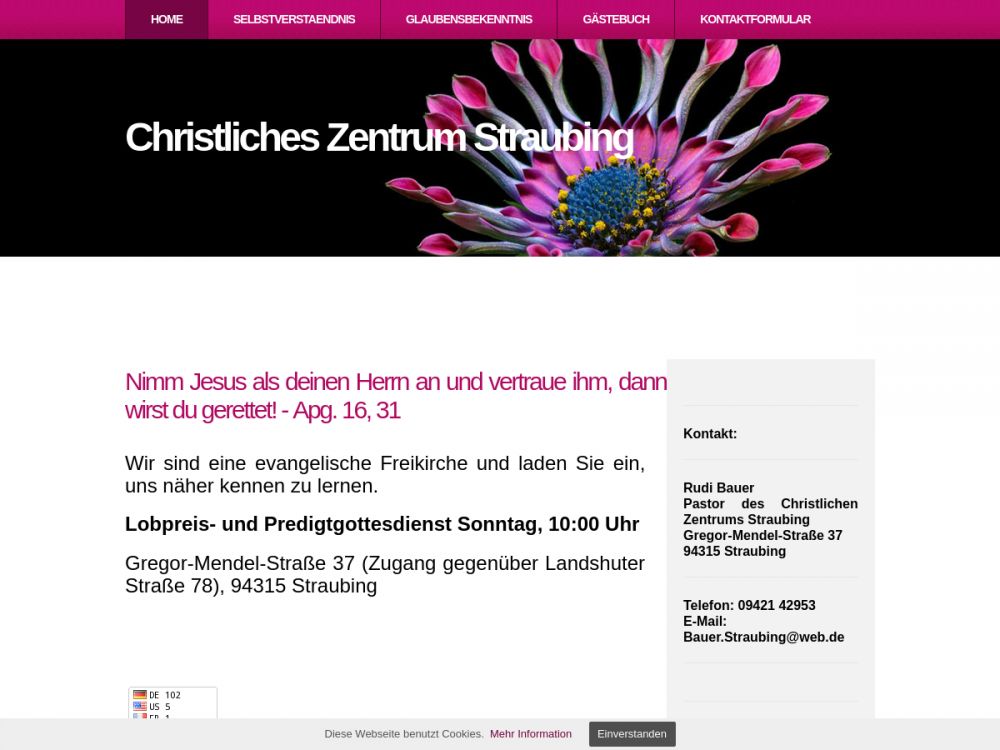 Gottesdienst in der Eichendorffstraße 11; Postanschrift: Gregor-Mendel-Straße 37 94315 Straubing Deutschland |